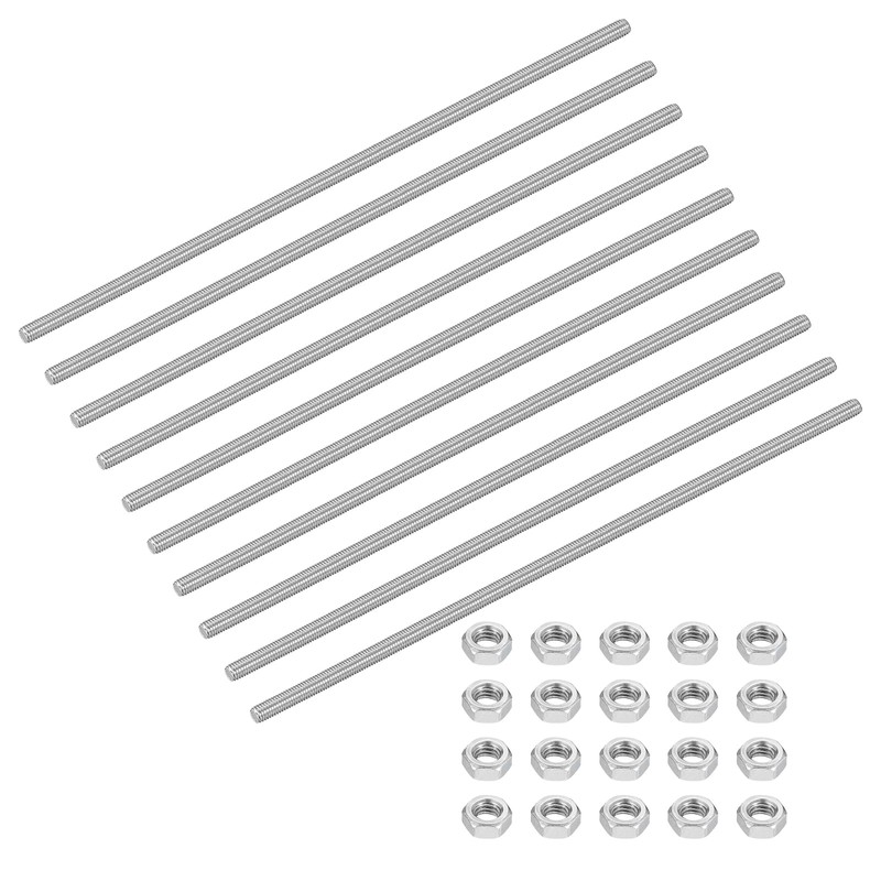 Package Content: 10Pcs x Fully Threaded Rods with 20Pcs x Nuts