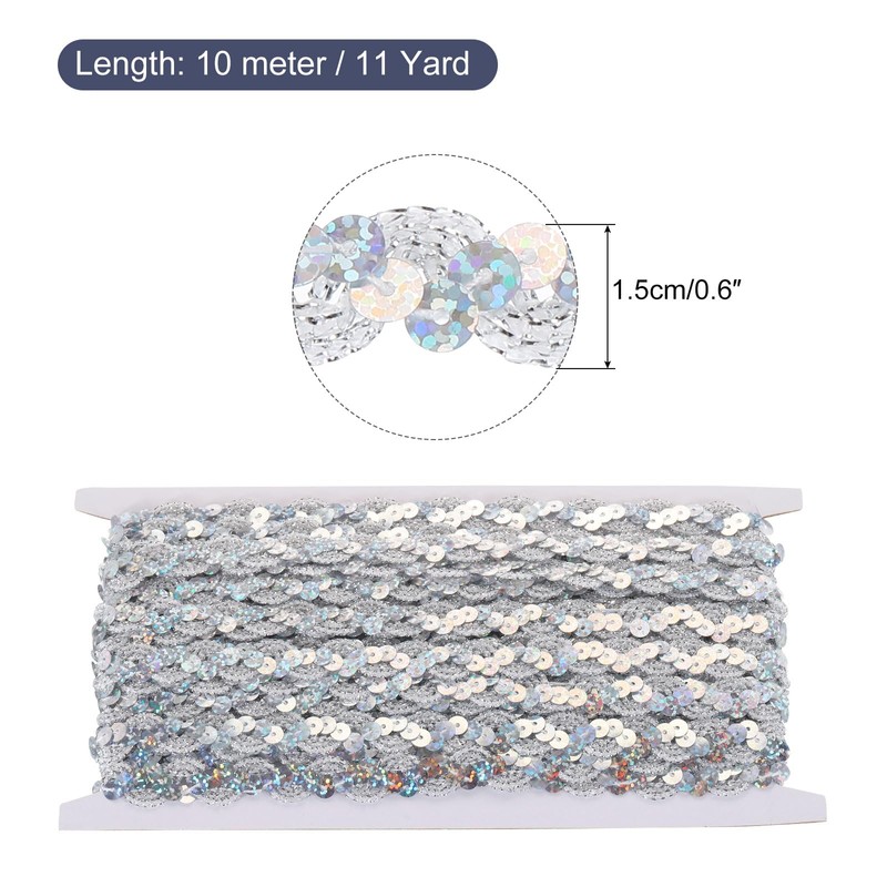 - The sequin strip provides here:Color:Bling Silver; Material: PVC; Size: 1.5cmx 10 meter / 0.6 inch x 11 Yards(W*L);There are many colors and sizes for you to choose