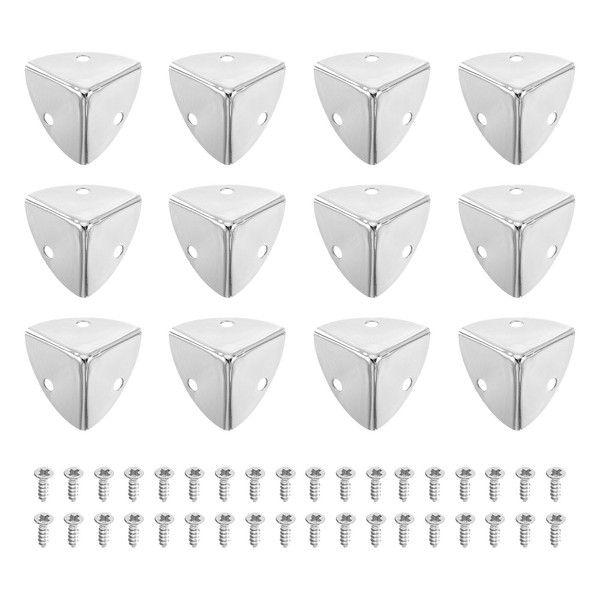 sourcing map 12 Pcs Metal Edge Guard, 23mm Decorative Box Corner Cover, Furniture Corner Edges Protector with Mounting Screws, Silver