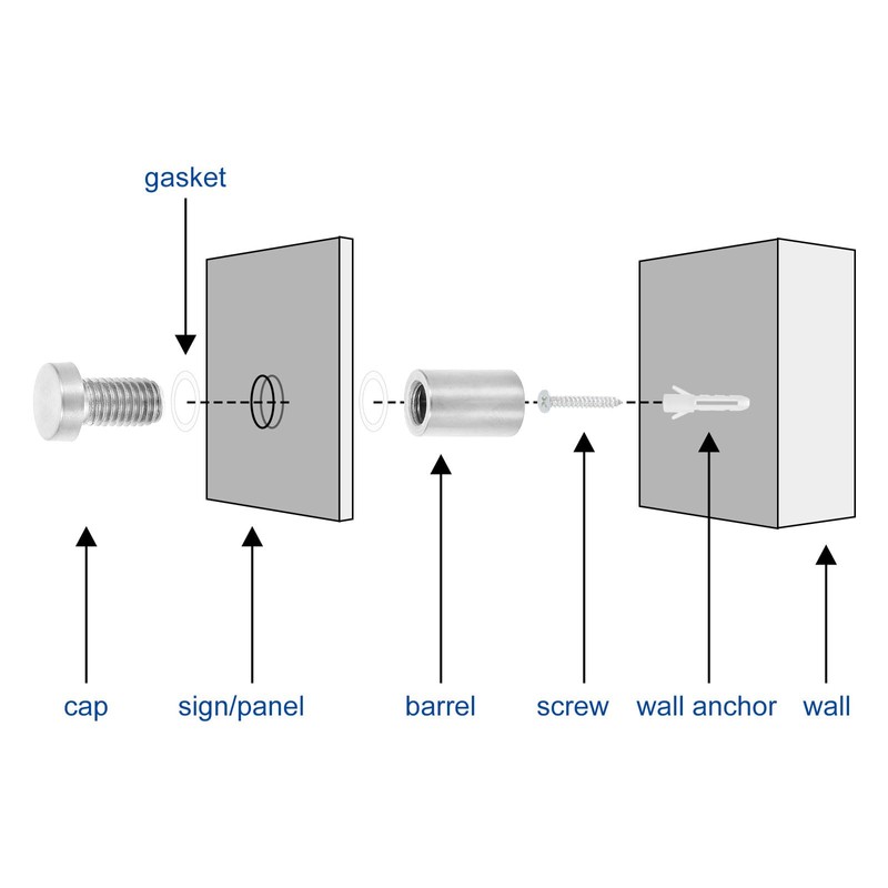 - [Material] The sign standoff screws are made of stainless steel, which has high hardness, is durable, wear-resistant, not easy to deform, and has good rust and corrosion resistance and can be used for a long time