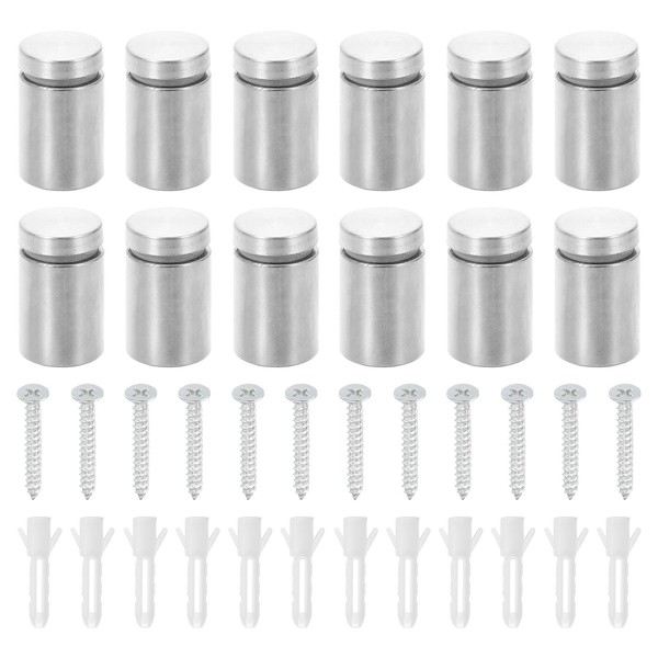 - [Sign Standoff Screws] The thread size of these advertising screws is 10x18mm/0.4x0.7inch(D*L), the body length is 25mm/1inch, and the total size is 19x30mm/0.75x1.18inch(D*H), you will receive 12 pcs advertising screws; 12 pcs self-tapping screws and 12 pcs expansion tubes
