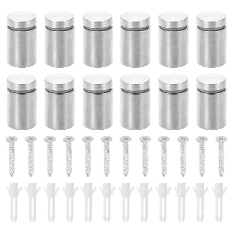 sourcing map 12 Pcs Standoff Screws, 3/4" x 1.18" Stainless Steel Advertising Screws Wall Standoff Mounts Hardware for Acrylic Picture Frame Glass Signs Hanging, Silver
