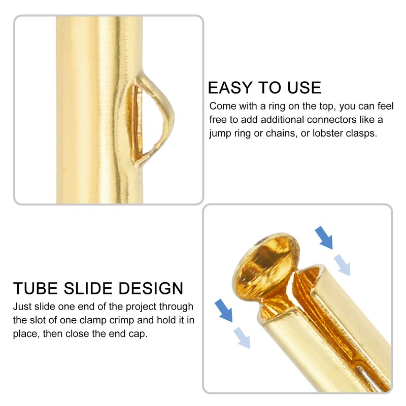 - WHAT YOU GET - You will get 120pcs of tube slider clasps to meet your various uses: Gold Tone Color, Slide End Clasp Overall Size: 4x10/13/16/20/25/30mm(W*L).