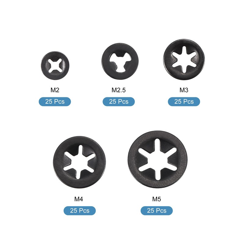 • [SIZE & PACKAGE]: Our tooth locking washers have 5 specifications M2, M2.5, M3, M4, M5. And the packaging includes 25pcs M2, 25pcs M2.5, 25pcs M3, 25pcs M4 and 25pcs M5 Washers.