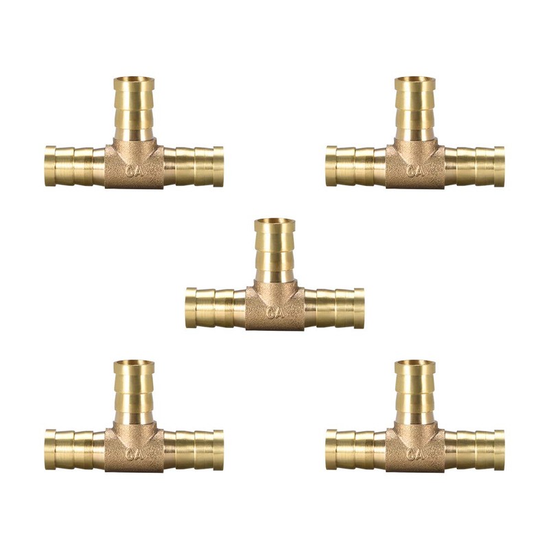 sourcing map 12mm or 1/2" ID Brass Barb Splicer Fitting,T-Shaped 3 Ways,Barb Hose Fitting Air Gas Water Fuel,Barbed Tee Connector