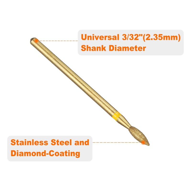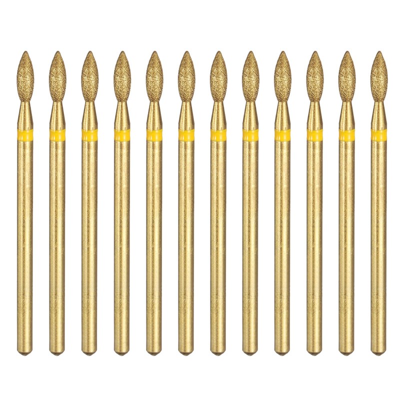 sourcing map 12pcs 325-400 Grits Diamond Grinding Bit 2.6mm Oval Head 2.35mm Shank 7mm Length Titanium Plated Stone Sanding Drill Bits Rotary Tool for Nails Grinding Polishing