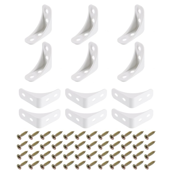 Package Content: 12pcs x Plastic L Shaped Angle Brackets, 48pcs x Mounting Screws