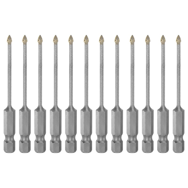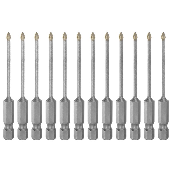 sourcing map 12pcs Concrete Masonry Drill Bits 3mm (1/8") Tungsten Carbide Tip Triangle Drill Bit for Ceramic Tile Brick Glass Plastic Wood, Silver