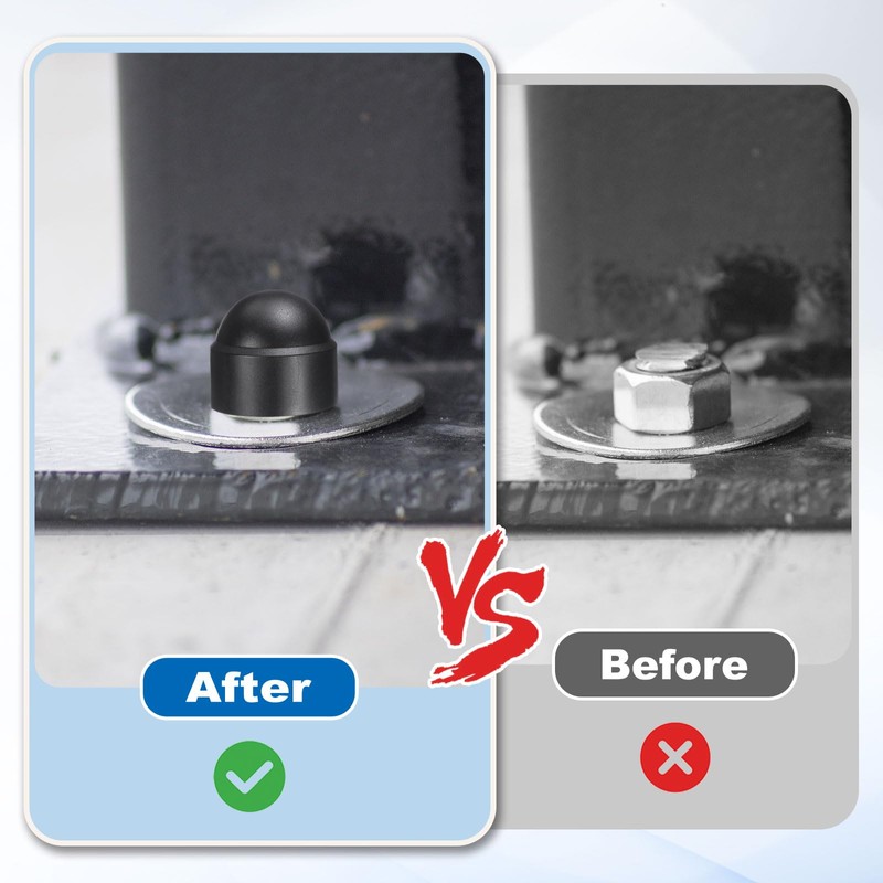 - Feature: These bolt protectors have smooth edges, are not easy to break or deform, are wear-resistant and durable, and can be used safely both indoors and outdoors. They not only protect the bolts, but also prevent the unsightly bolt heads from being exposed, adding a sleek look to your machine or furniture