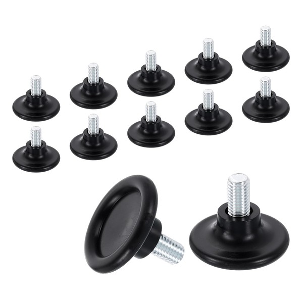 sourcing map 12Pcs M10 Thread Furniture Feet Levelers, 45x16mm Adjustable Leveling Table Feet, Screw on Furniture Glide Leveling for Chair Stool Legs, Black