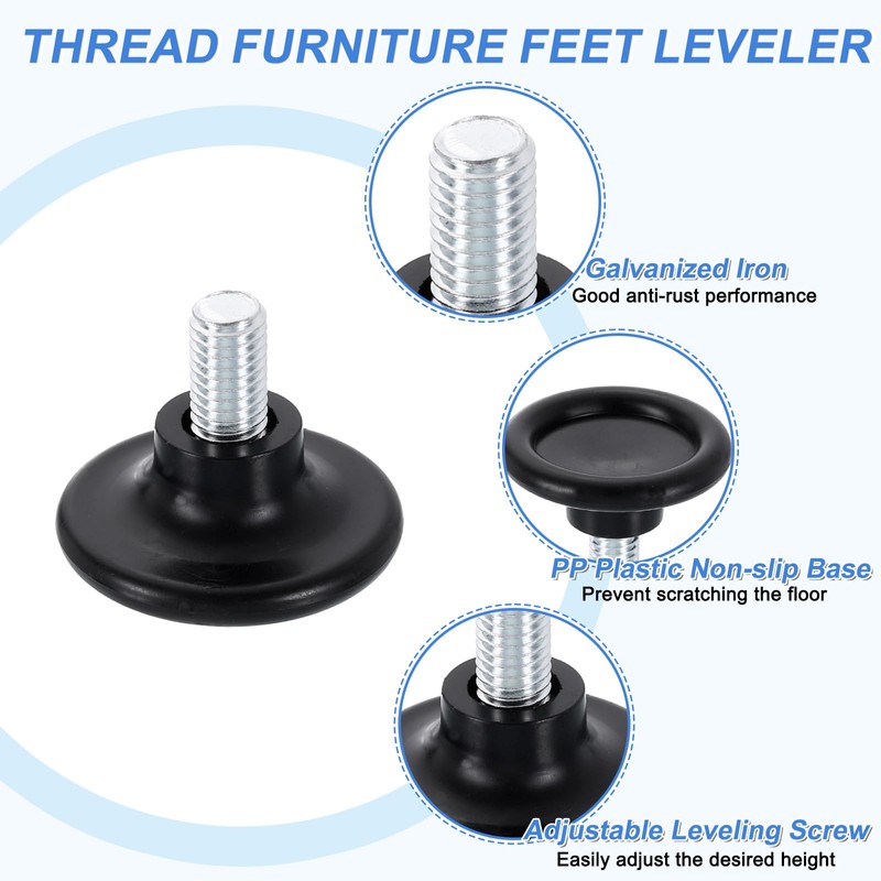 - [Widely Applicable]: The threaded furniture feet screws are widely used in leveling indoor and outdoor tables, chairs, stools, dining tables, cabinets, wardrobes, TV cabinets and other furniture, suitable for a variety of ground types such as wooden floors, tiles, carpets, etc.
