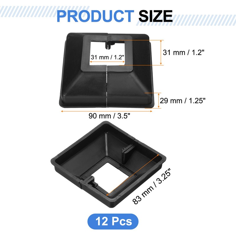 - [Size & Package]: The package comes with 12pcs of post covers, measuring about 90 x 83 x 29 mm / 3.5 x 3.25 x 1.25 Inch ( L x W x H ) in total size and the inner size of 31 x 31 mm / 1.2 x 1.2 Inch ( L x W ), providing full coverage for your posts less than mentioned size. Please ensure you measure your posts before purchasing for the right size