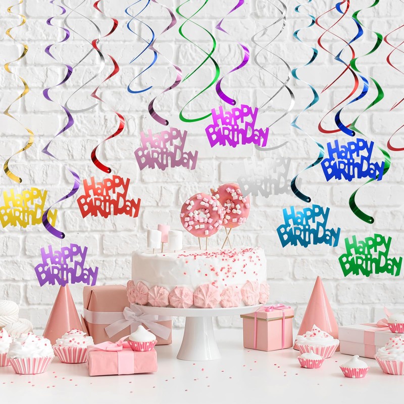 - Birthday Party Decorations - These glossy sparkling swirls decorations can be used indoors or outdoors. You can hang them from ceiling, wall, doorway, and branches. Perfect for birthday parties or any commemorative event, instantly transform any space into a dazzling party venue.