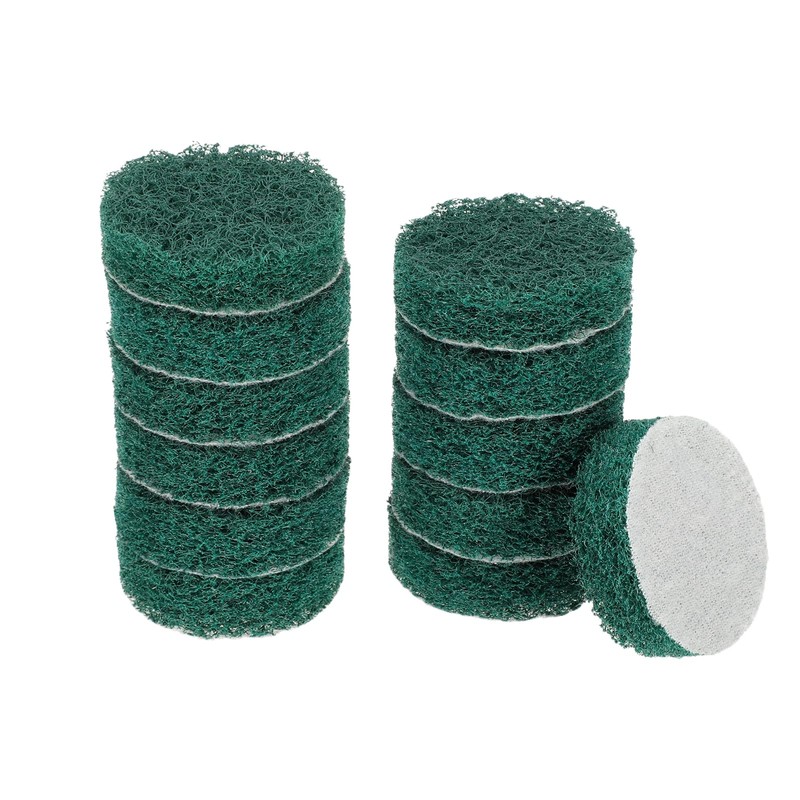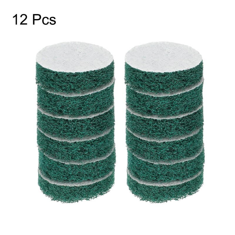 sourcing map 12pcs Scrubber Scouring Pads 180 Grits 2 Inch Drill Power Brush Hoop and Loop Surface Conditioning Disc Drill Scuffing Disc Scrub Pads for Home Kitchen Cleaning, Green