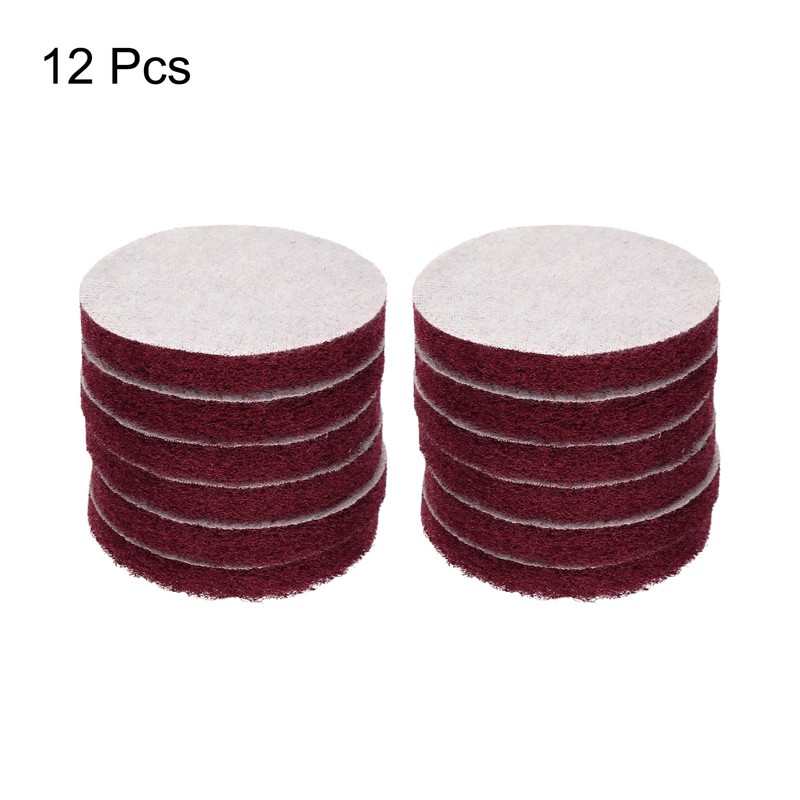 sourcing map 12pcs Scrubber Scouring Pads 500 Grits 3 Inch Drill Power Brush Hoop and Loop Surface Conditioning Disc Drill Scuffing Disc Scrub Pads for Home Kitchen Cleaning, Dark Red