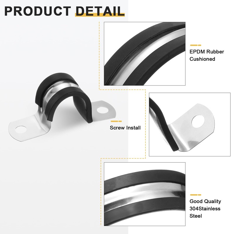 - Durable Material: The cable clamp is crafted from 304 stainless steel and EPDM rubber cushioned pads for durability, it is oil-proof, waterproof, anti-oxidation, rust and corrosion-resistant, and the elastic rubber material provides effective buffering and insulation properties.