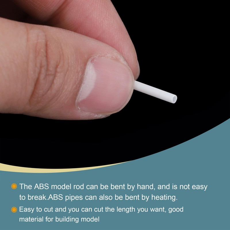 • ABS plastic is of good toughness and strength. The ABS model rod can be bent by hand and is not easy to break. ABS pipes can also be bent by heating; Easy to process, easy to cut and you can cut the length you want, they are good material for building model