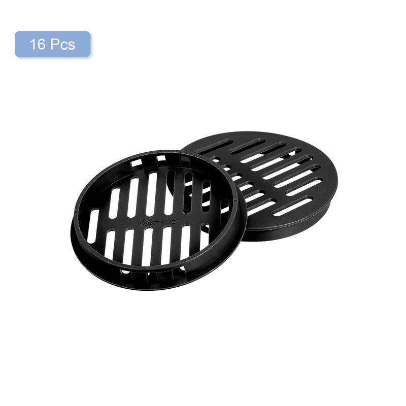 sourcing map 16Pcs 80mm/3.15" Circular Soffit Air Vents, Plastic Soffit Vent Cover, Round Mesh Hole Louver for Bathroom Kitchen Cabinet Wardrobe, Black