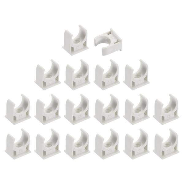 sourcing map 18Pcs PVC Water Pipe Clamps Clips, U-Shaped Tubing Hose Buckles, Irrigation Tube Holder for 16mm OD for TV Trays Tubing Hose Hanger Support Tubing, White
