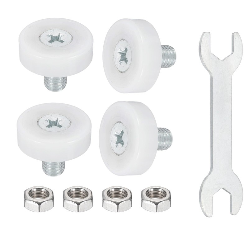 sourcing map 19 mm Drawer Rollers Wheel Cabinet Positioning Sliding with Screw Wrench for File Document Drawers DIY Replacement Parts White, 4 Pcs