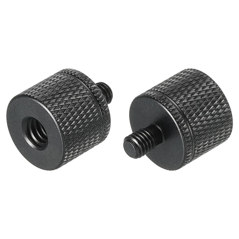 - Camera screw threads we offer here are in the size of: material: aluminium alloy; colour: black; body height: 13 mm / 0.59 inches; thread: 1/4 female to M5 male; thread spacing: 20G x 0.8 mm (female x male), total size: 16 mm x 20 mm / 0.63 x 0.79 inches (D x H)