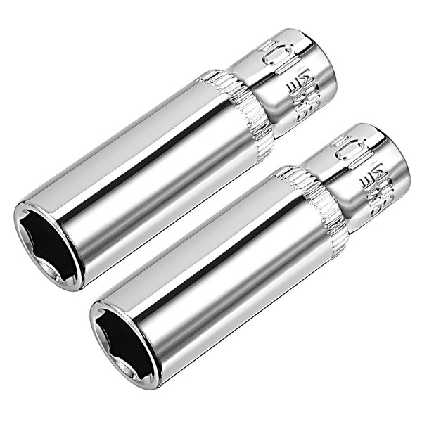 sourcing map 2 Pcs 1/4 Inch Drive 10mm 6-Point Deep Socket, Metric, Cr-V