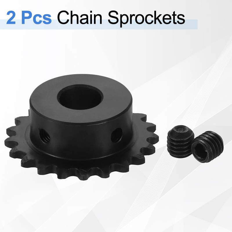 sourcing map 2 Pcs #25 Chain Roller Sprocket 12mm Bore, 21 Tooth C45 Carbon Steel ANSI #25 Roller Sprocket Round Hole with Set Screws for ISO 04C Chain