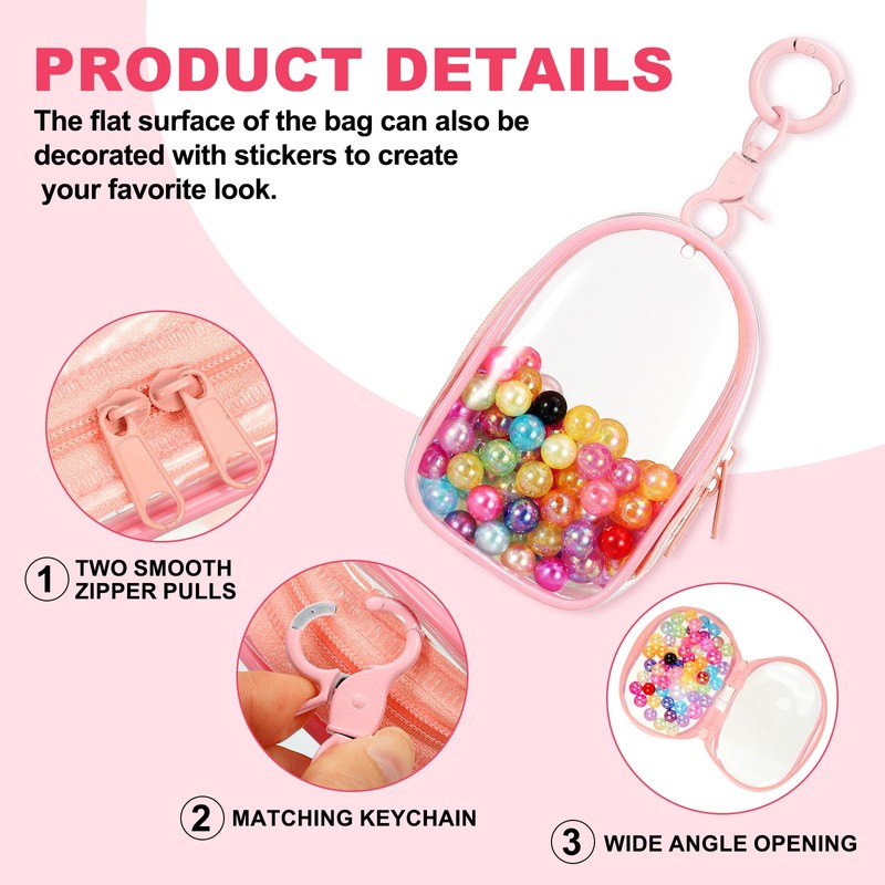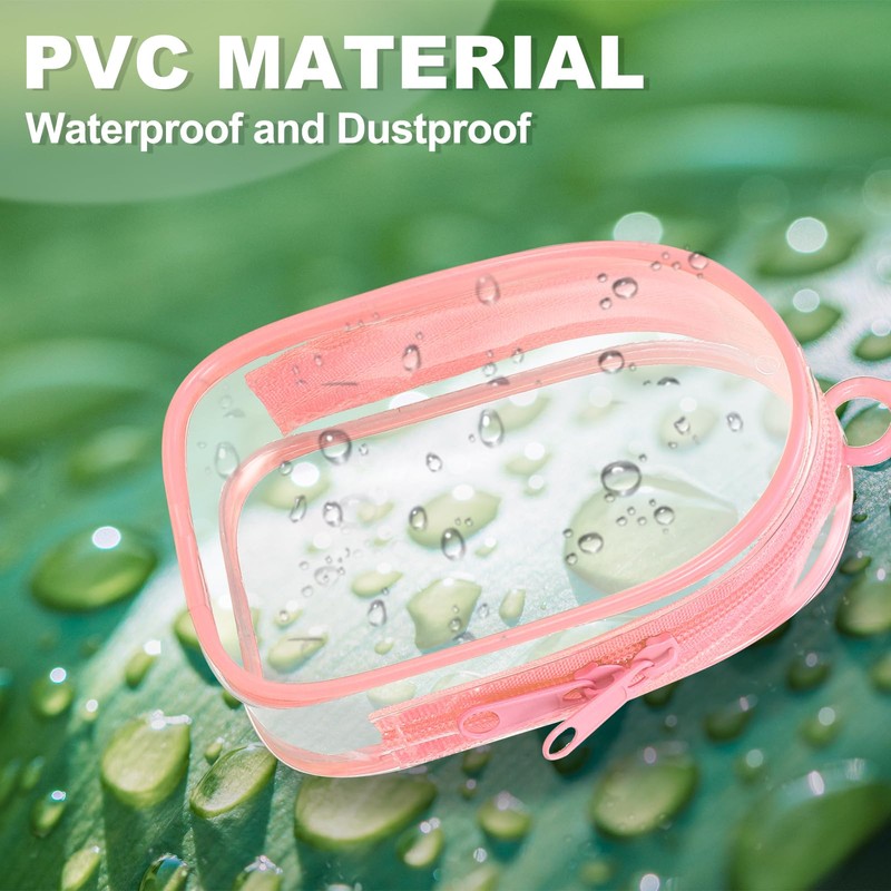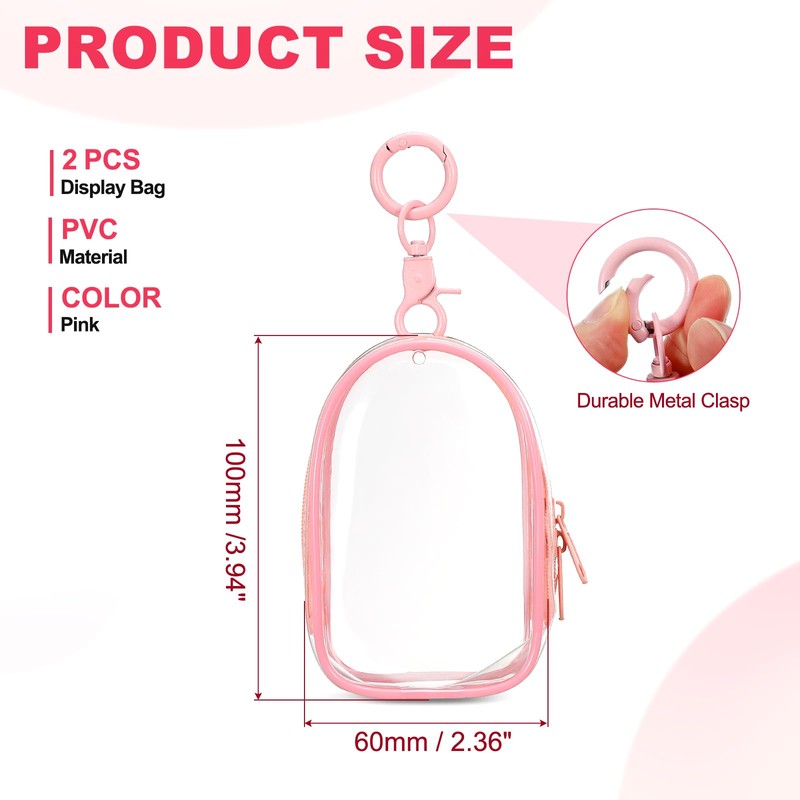 sourcing map 2 Pcs 3.94x2.36 Inch Clear Figure Display Bag with Keychain, PVC Portable Small Dolls Storage Bag, Zipper Closure Carrying Display Case Pouch for Collectibles (Cabin Pink)