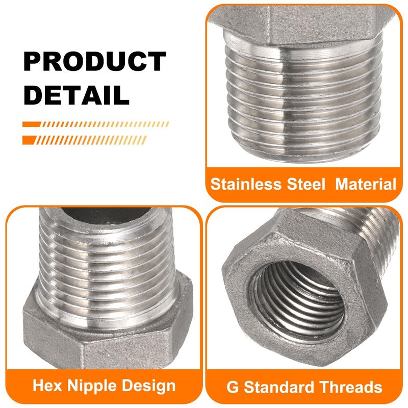 - Material: The reducer hex bushing is made from 304 stainless steel, sturdy and durable, resistant to rust and corrosion, ensuring long-lasting in bathrooms