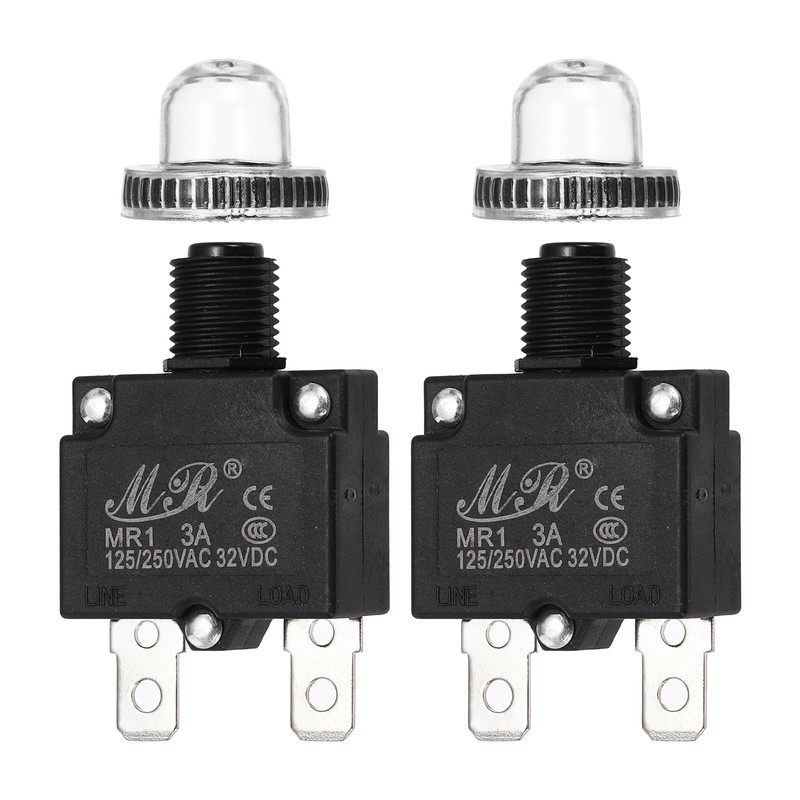 sourcing map 2 Pcs 3Amp Push Button Circuit Breaker,125/250V AC 32V DC Manual Reset Thermal Overload Protector with Waterproof Button Caps
