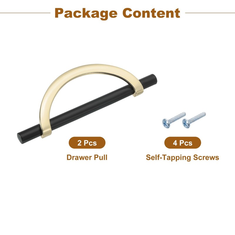 sourcing map 2 Pcs 5.04 Inch Kitchen Cabinet Handles, Half Moon Drawer Pulls Cabinet Pull Sliding Door Pull with Screw, Black/Gold