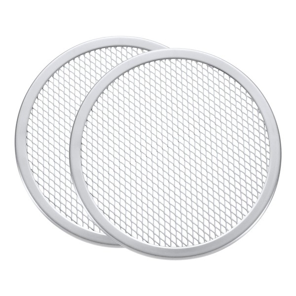 Sourcing Map 2 Pcs 8" Aluminum Round Pizza Baking Screen with Holes, Silver Tone