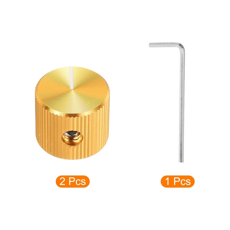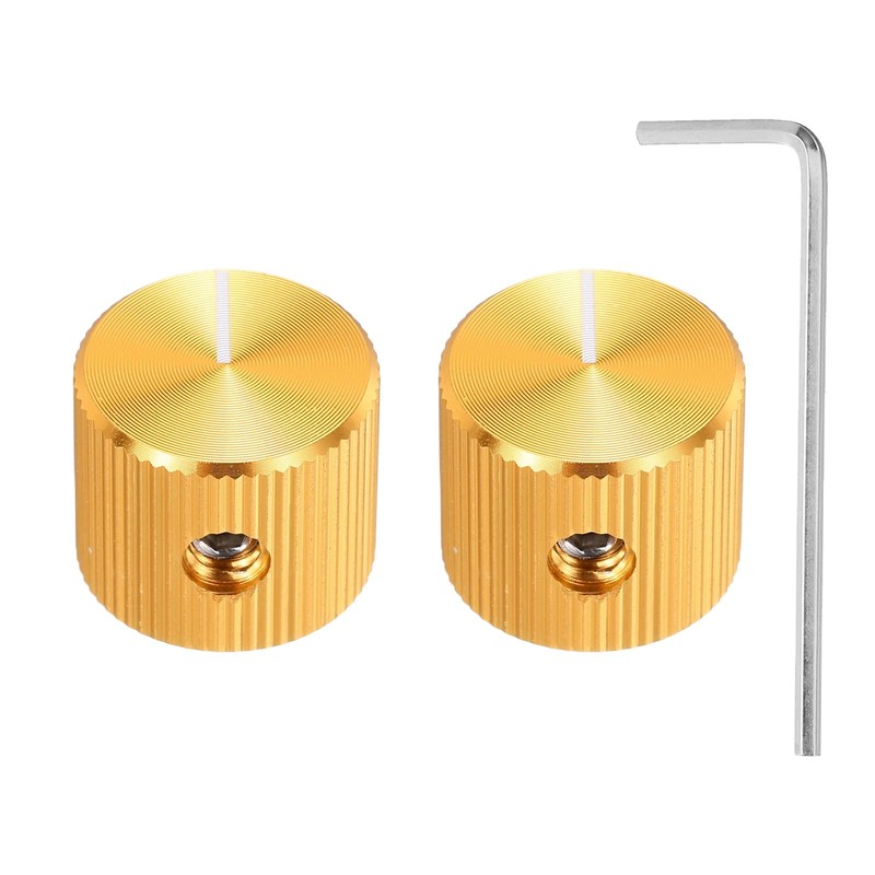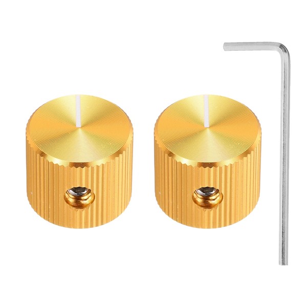 sourcing map 2 Pcs Aluminium Potentiometer Knobs, 1/4"(6mm) IDx5/8"(15mm) ODx1/2"(12.5mm) Height Universal Volume Tone Control Knobs for Guitar, Bass, Straight Line Indicator, Gold