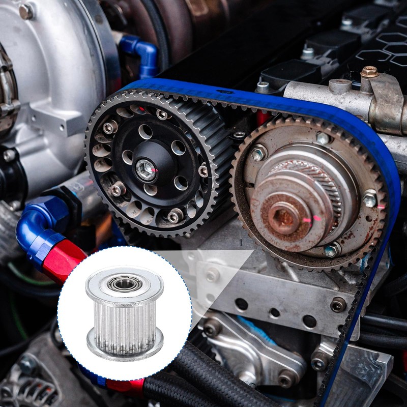 A timing belt pulley is a toothed wheel designed to interface with a timing belt, enabling precise synchronization and torque transfer between rotating shafts. It ensures alignment in CNC machines, 3D Printers, and automotive engines when paired with a belt.