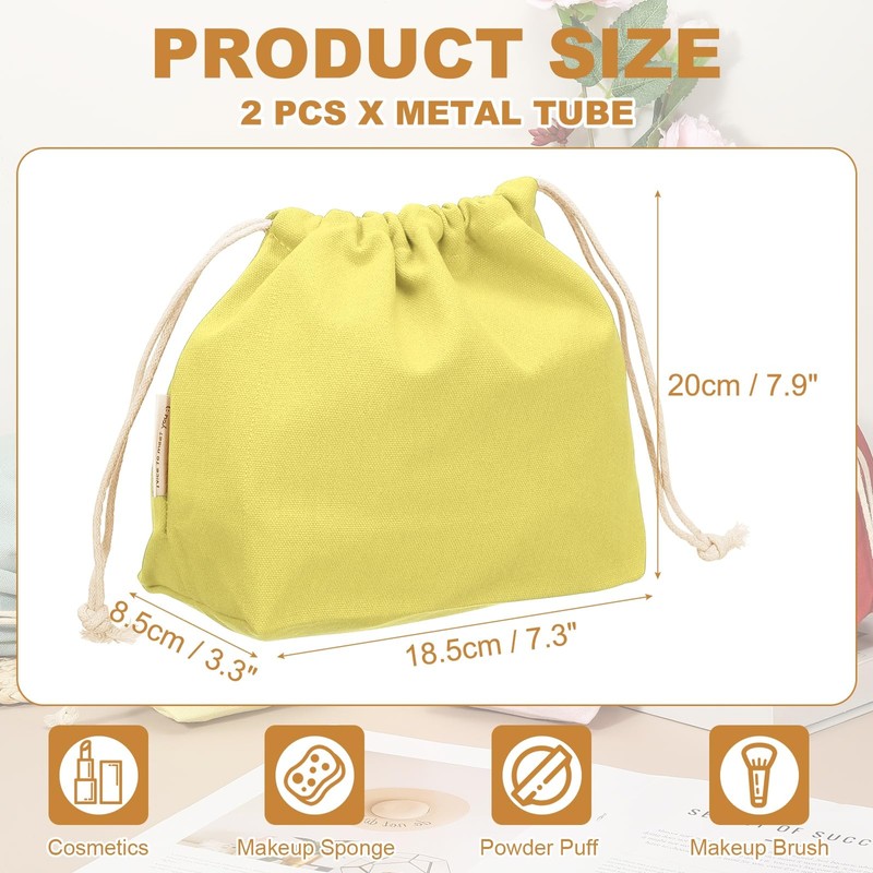 sourcing map 2 Pcs Drawstring Makeup Bag, 7.3" Canvas Cosmetic Bag Women's Make Up Bags Toiletry Organizer Pouch for Travel Toiletries Accessories, Yellow