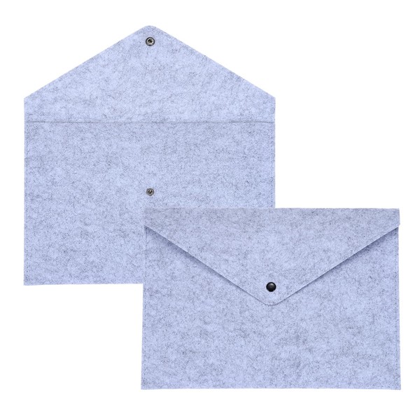 sourcing map 2 Pcs Felt File Folders, A4 Envelope Folder File Document Storage Bag Portable File Folder Organizer Case with Button Closure for Office Business(Light Grey)