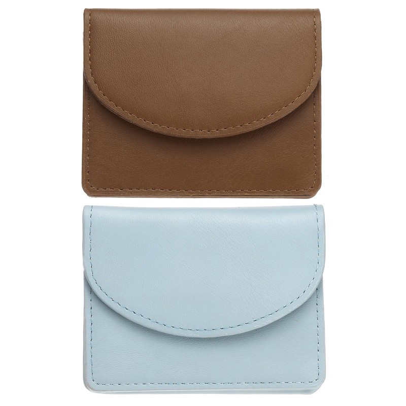 sourcing map 2 Pcs Leather Business Card Case, Professional Slim Business Card Holder Business Card Holder Wallet with 3 Card Slots for Men and Women, (Brown/Blue)