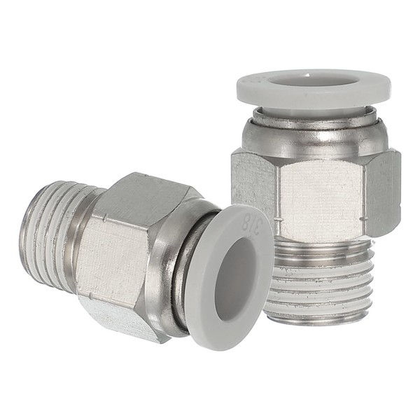 sourcing map 2 Pcs NPT Push to Connect Air Fittings, Male Straight 3/8" Tube OD x 1/4" NPT Thread Air Quick Connector Coupling Adapter for Gas Hose Pneumatic Tools White