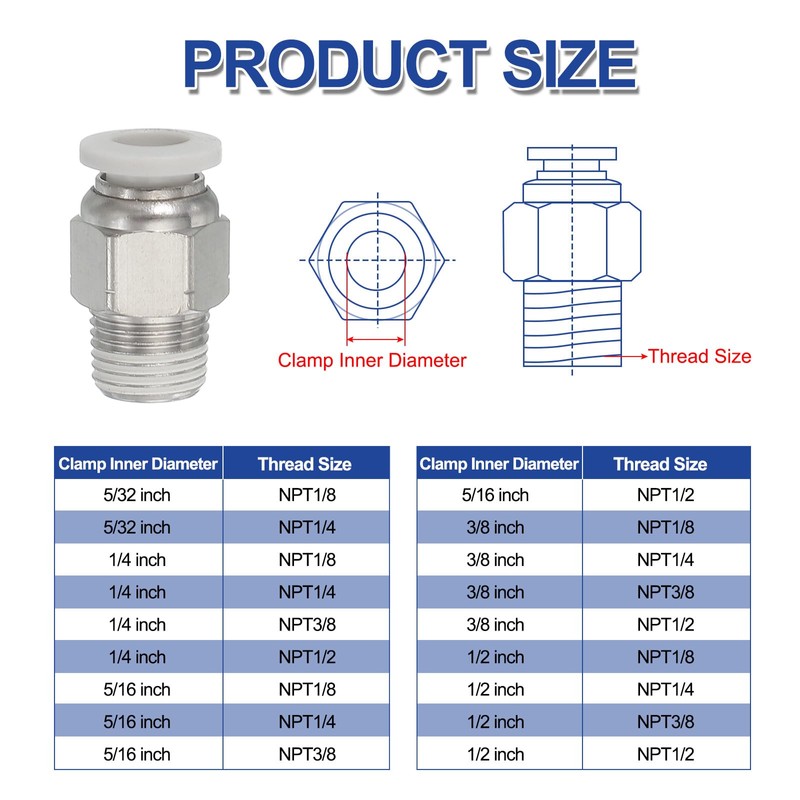 | Size: | 3/8" OD-1/4" NPT Thread |