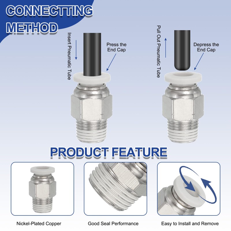 fittings for air compressors, pneumatic tools, vacuum & industrial systems. Works with PVC/nylon tubes. Perfect for automotive, factories, machinery production lines & DIY.
