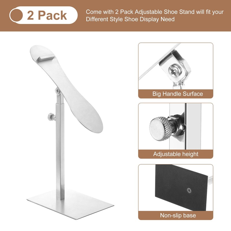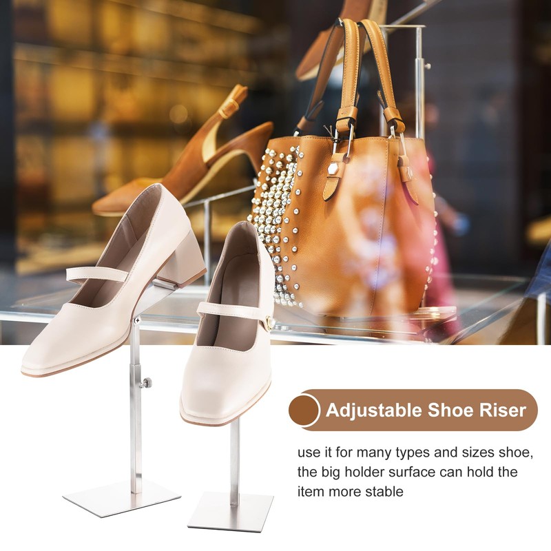 sourcing map 2 Pcs Shoe Display Stand, Adjustable Height Risers Stand Countertop Metal Shoe Rack Stainless Steel High Heel Shoe Display Shoe Rack for Home Retail Store Supplies, Silver