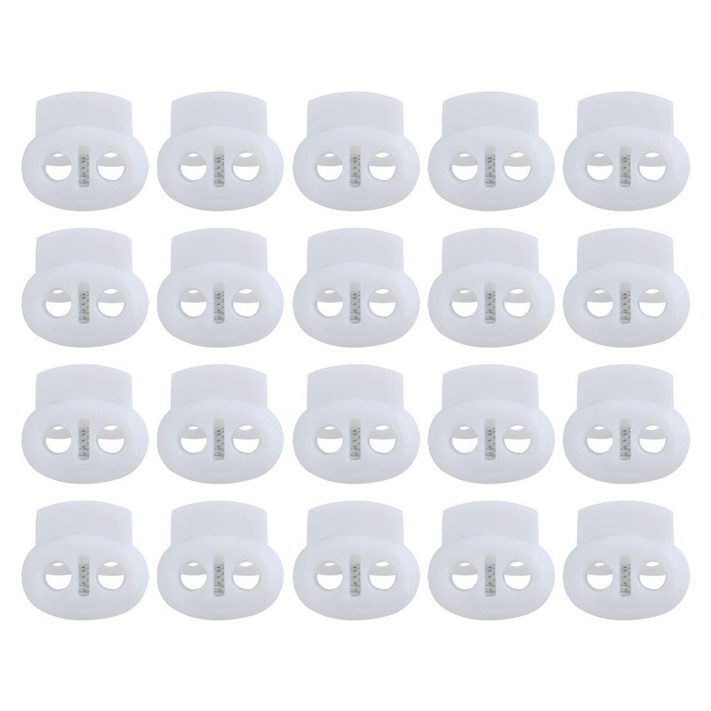 sourcing map 20 Pcs Plastic Cord Locks Spring Stopper Double Hole Toggle Fastener Stopper Rope End for Drawstrings Clothing, Shoe, Bags, Tie-Downs, 17 x 15mm White