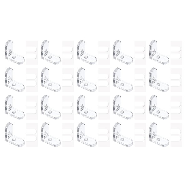 sourcing map 20 Set Acrylic Corner Bracket, L-Shaped Corner Connector Joint Hanger Brace Brackets Transparent w/Sticker for DIY Display Box