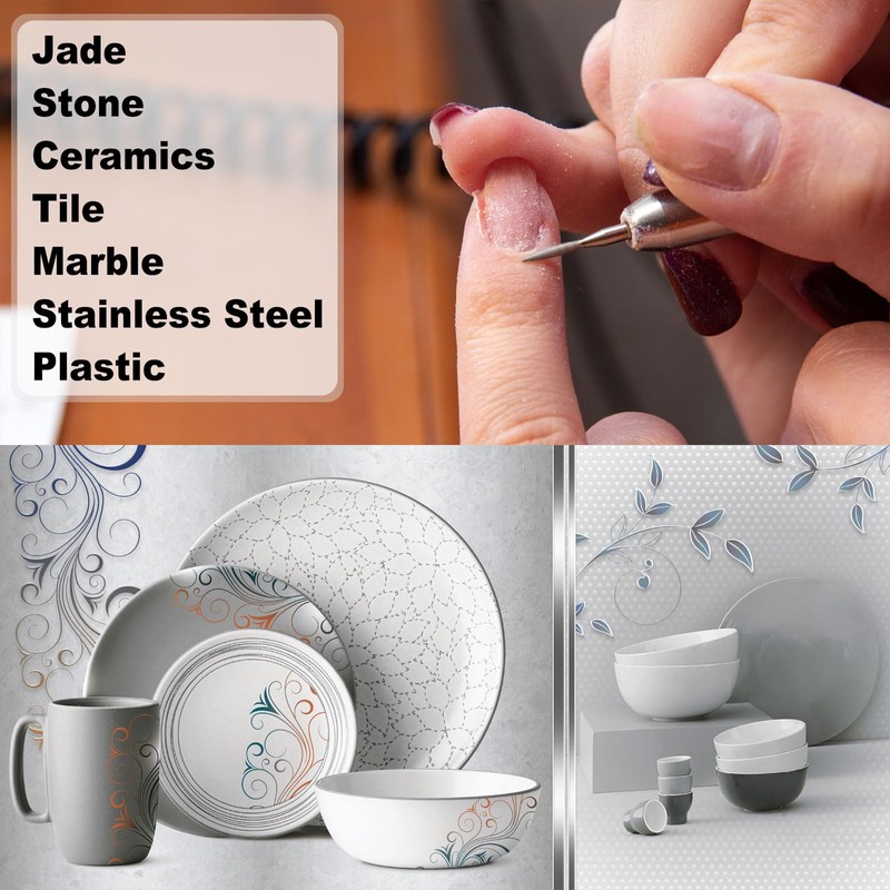 - Applications - The diamond drill bit set is very suitable for home decoration and handicrafts. It is a good helper for polishing, grinding, drilling, cutting, engraving and other operations, which can be engraved on various materials, such as tiles, ceramics, marble, stone, ceramics, agate, and even hard metals such as iron and silver