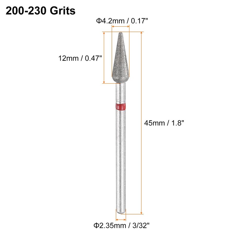 sourcing map 200-230 Grits Diamond Grinding Bit 4.2mm Bullet-Head 2.35mm Shank 12mm Length Stone Sanding Drill Bits Rotary Tool for Ceramic Glass Nails Grinding Polishing