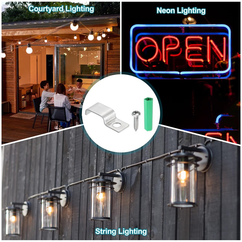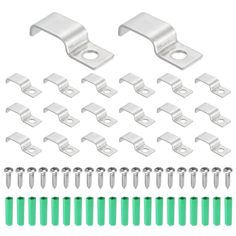 sourcing map 20Pack Rigid Pipe Strap Fit for 5x15mm Strip/Cable, Stainless Steel U Shape Cable Strap Clamp with 1 Hole for Conduit, Wire, Cord, Pipe Fixing