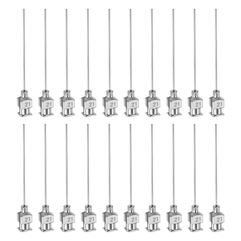 sourcing map 20pcs 21Gauge Stainless Steel Dispensing Needles, 1-1/2" All Metal Glue Needle Tube Blunt Tips Luer Lock for Thick Liquids, Ink, Glue, Lab Use