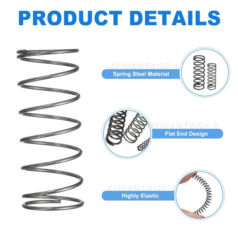 - Dimensions: Package comes with 20 pieces of compression springs; 20mm OD, 1.2mm Wire Size, 50mm Free Length.