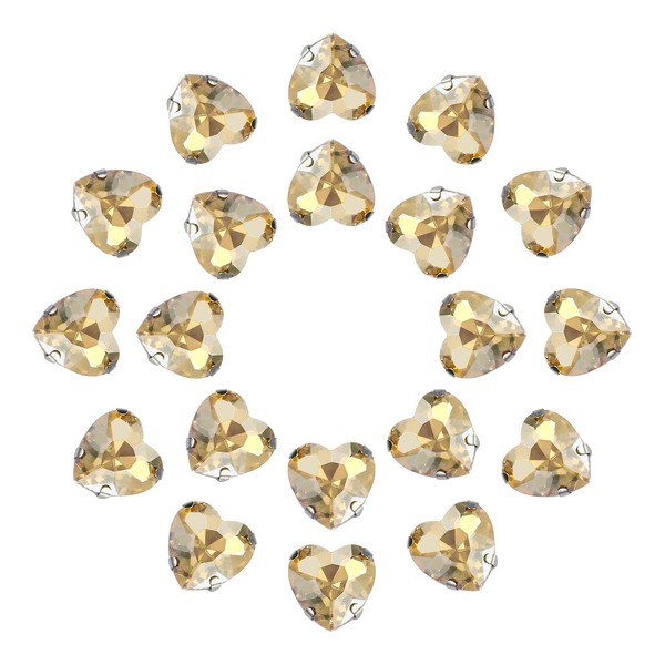 sourcing map 20Pcs Heart Sew on Rhinestone, 10x10mm Heart Crystal Glass Rhinestones Metal Flat Back Gems with Silver Prongs Setting for Crafts, DIY Jewelry, Clothes (Golden Champagne)