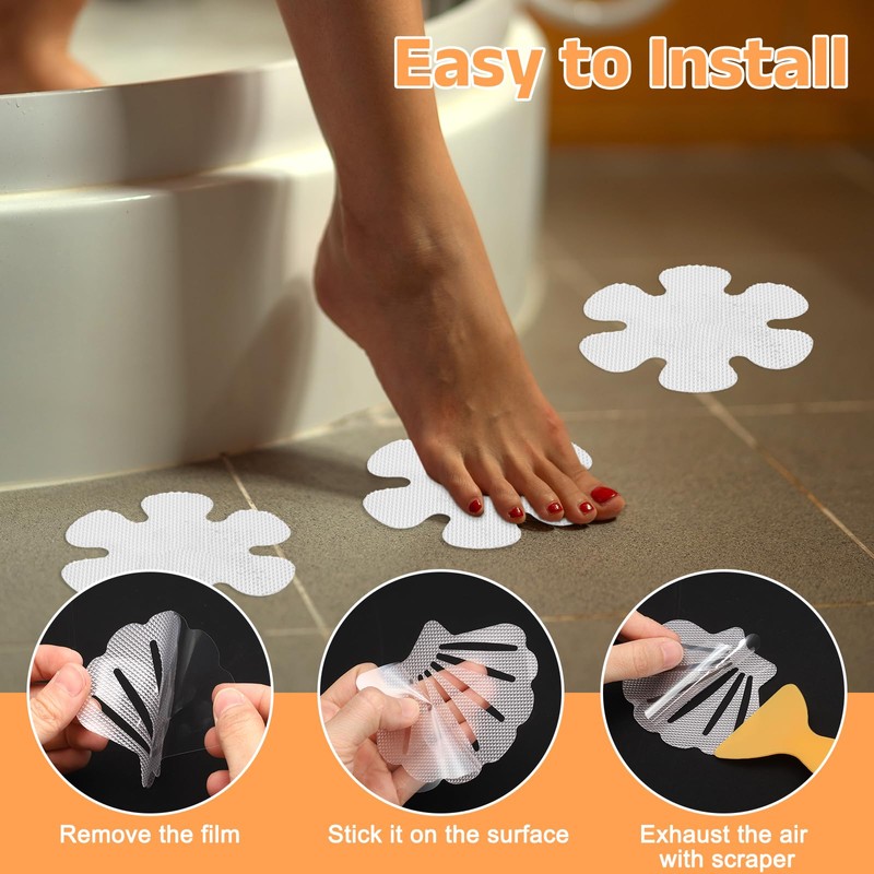 - PEVA Material: The non-slip bathtub stickers are made of PEVA material with a non-slip surface, waterproof, safe, and comfortable to use. It is used for these stickers can easily be removed without leaving any residue behind.